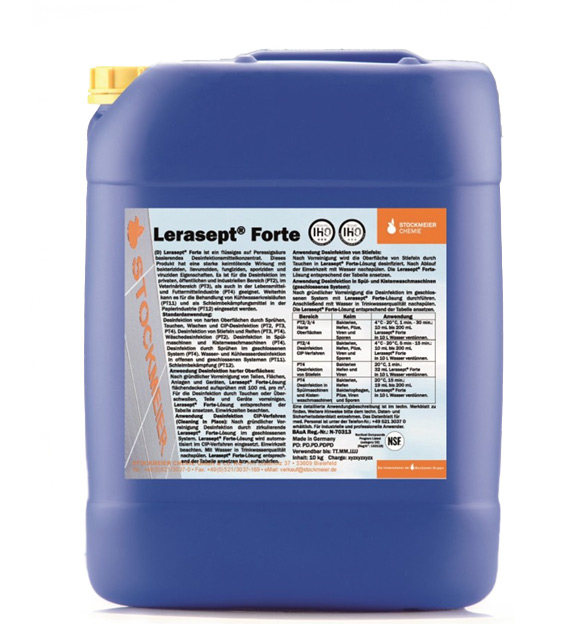 Lerasept® forte ima raznovrsnu upotrebu, ne- penušavo sredstvo, efikasno i na niskim temperaturama sa izraženim baktericidnim, fungicidnim, sporocidnim i virucidnim svojstvima.